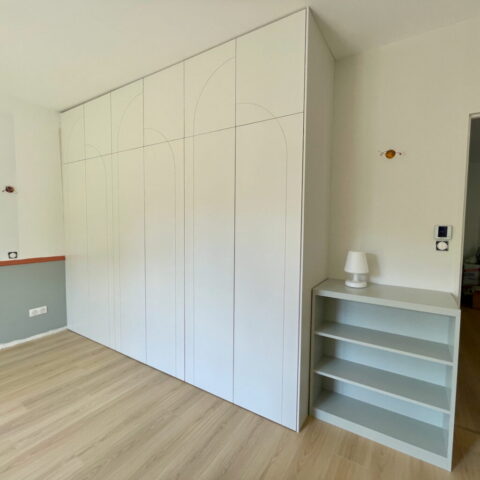 Dressing toute hauteur avec petite bibliothèque dans une chambre d’enfant